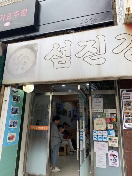 朝食は「ソムジンガンシジミスープ専門店」でシジミスープ定食をオーダー。全羅南道(シジミで有名な大河がある)出身のオーナーです。
