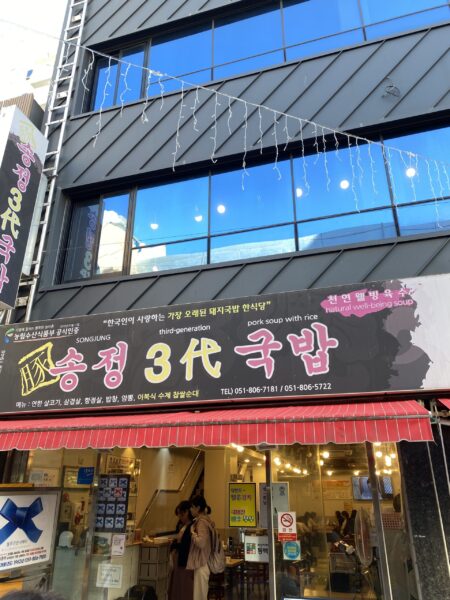 昼食に西面のテジクッパ通り「松亭3代クッパ」へ。もちろんデジクッパをオーダー。臭みもなく、まろやかな豚骨スープです。
