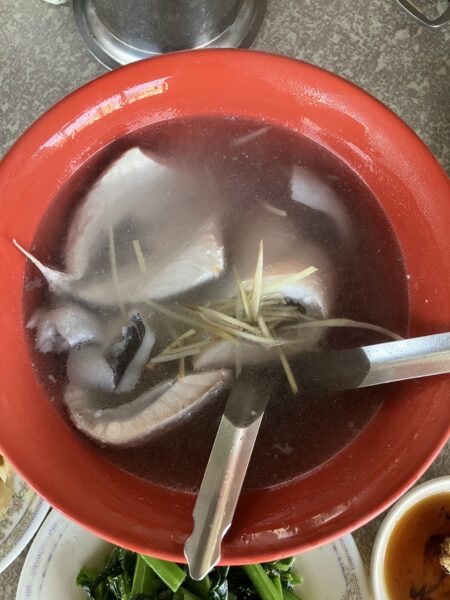 左はイカのあっさりスープ。右は台南でよく食べられる白身魚の虱目魚(サバヒー)です。程よく脂がのっておりお粥バージョンも人気です。
