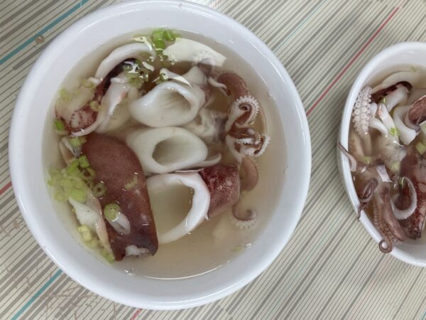 左はイカのあっさりスープ。右は台南でよく食べられる白身魚の虱目魚(サバヒー)です。程よく脂がのっておりお粥バージョンも人気です。