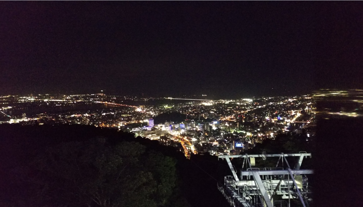 会館5階からロープウエーに乗って眉山から徳島平野を一望。