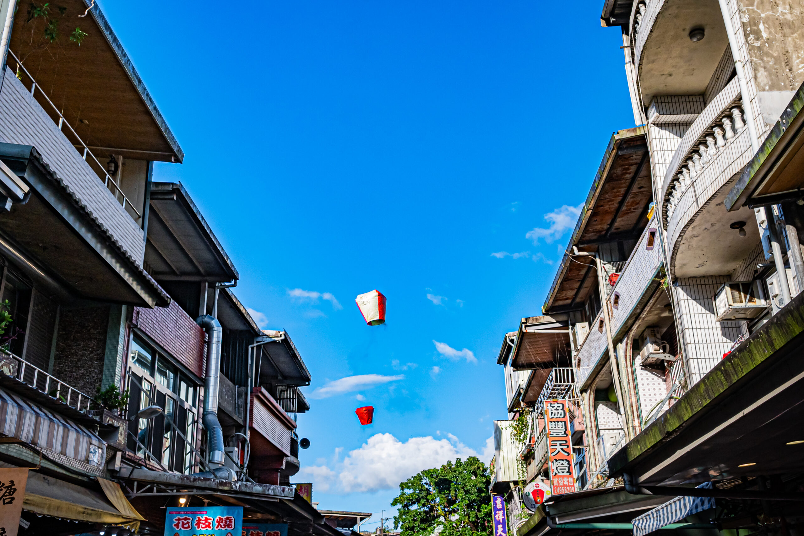 願いよ届け!十份にて天燈上げ体験(3-4人で1天燈)。